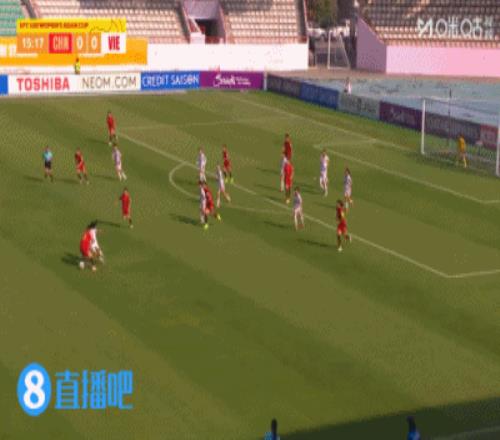 第10分钟,越南队陈红明中线附近任意球直接吊门,皮球在门前弹地后高出球门。↓