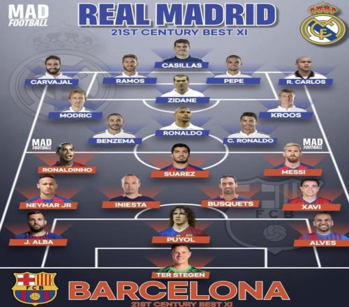 皇马巴萨21世纪最佳阵容发布!皇马到底哪里不如巴萨
