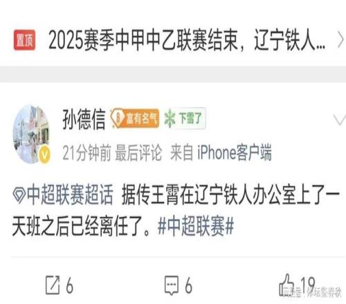 可事情很快就出现了戏剧化的反转,王霄刚报到,办公室的工位还没坐热,就突然离任。辽宁铁人本是中超升班马,刚刚赢得联赛首胜,正冲劲十足,这个消息传出多少显得有些突兀。